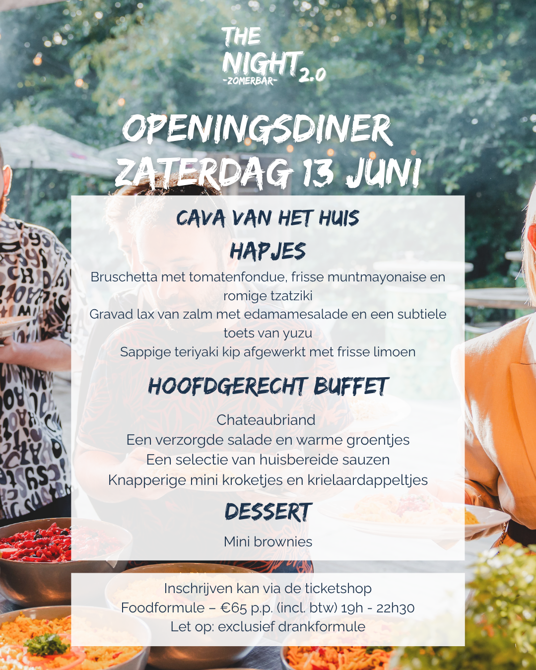 Tijdens ons openingsweekend organiseren we op zaterdag 13 juni ons openingsdiner. Een sfeervolle avond om het seizoen samen te starten.